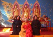 居家学佛者,皆会供养佛像,朝暮礼拜文,以此践行信仰。佛陀灭后,化相三宝转为住持三宝。今日所供之佛像为佛宝,印刷之经卷为法宝,单身僧装素食之僧为僧宝。骨灰寄存架了解到,三宝具足,代表佛法久住世间。众生供养三宝,可培植福田,种未来解脱之因,龙华三会值弥勒世尊,成就无上道业。